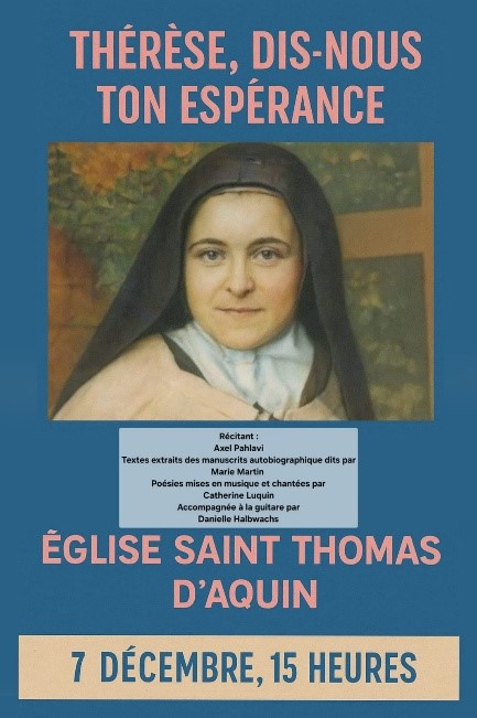 spectacle à Saint-Thomas mêlant musique, chant et lecture autour de la vie de Sainte Thérèse. Avec notamment Danielle, Marie et Axel.